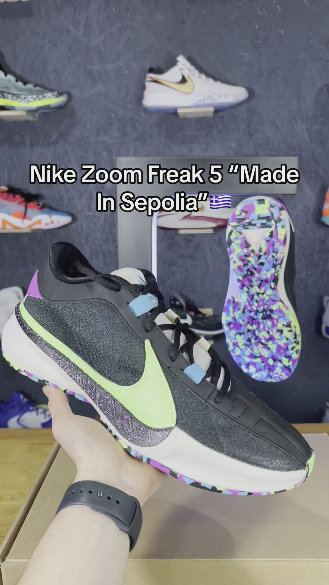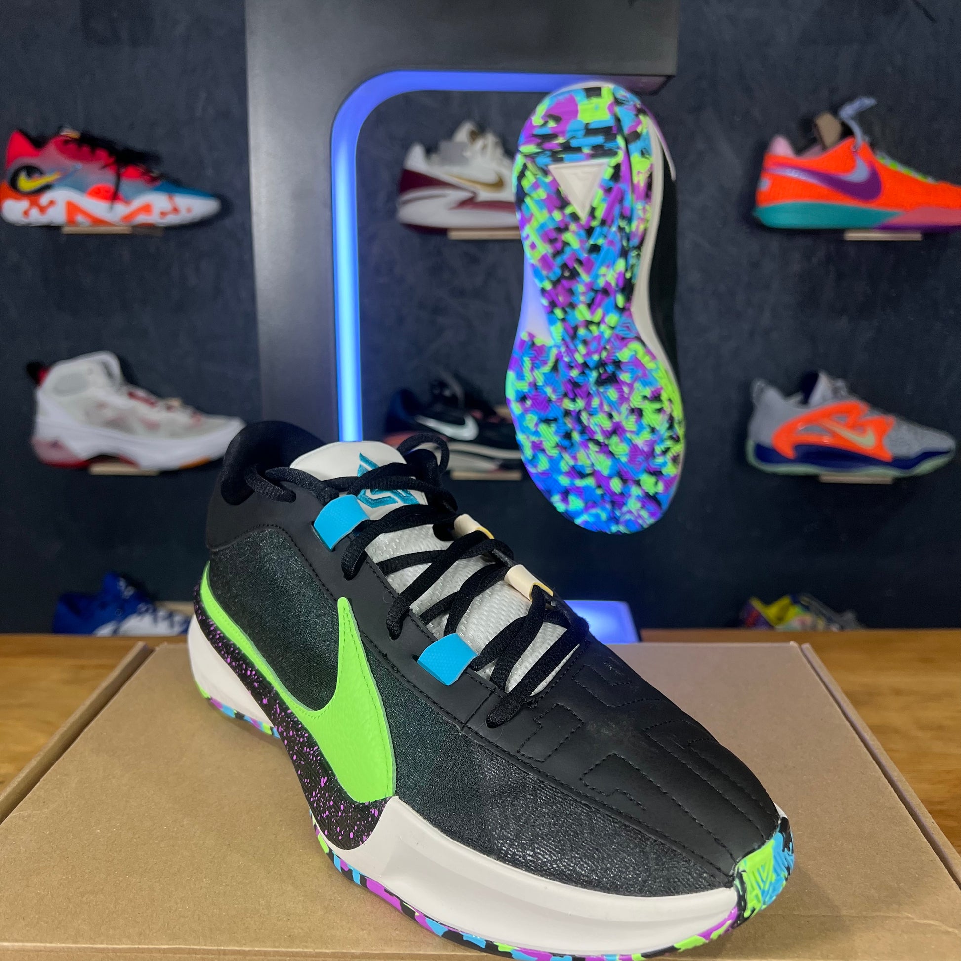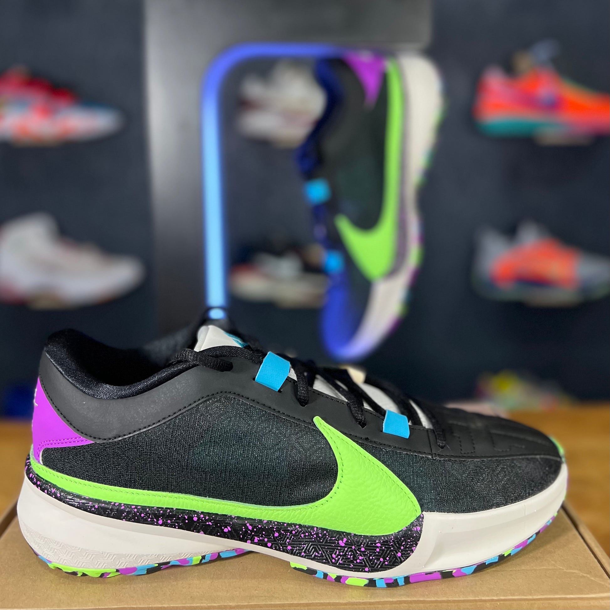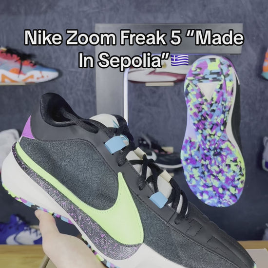 Contiene una suela de goma sólida con cortes laterales y verticales para facilitar la flexión del pie. El diseño de la suela contiene en la parte delantera múltiples logos Freak y en la parte trasera contiene el Smear Traction de Nike, misma tecnología de las GT Cut 2. La media-suela tiene el Zoom Air encapsulado en Phylon Foam, lo que es una mejora en estabilidad y durabilidad respecto a las Freak 4. Finalmente, el Upper o parte superior de la zapatilla tiene una combinación de tela transpirable con cuero sintético.