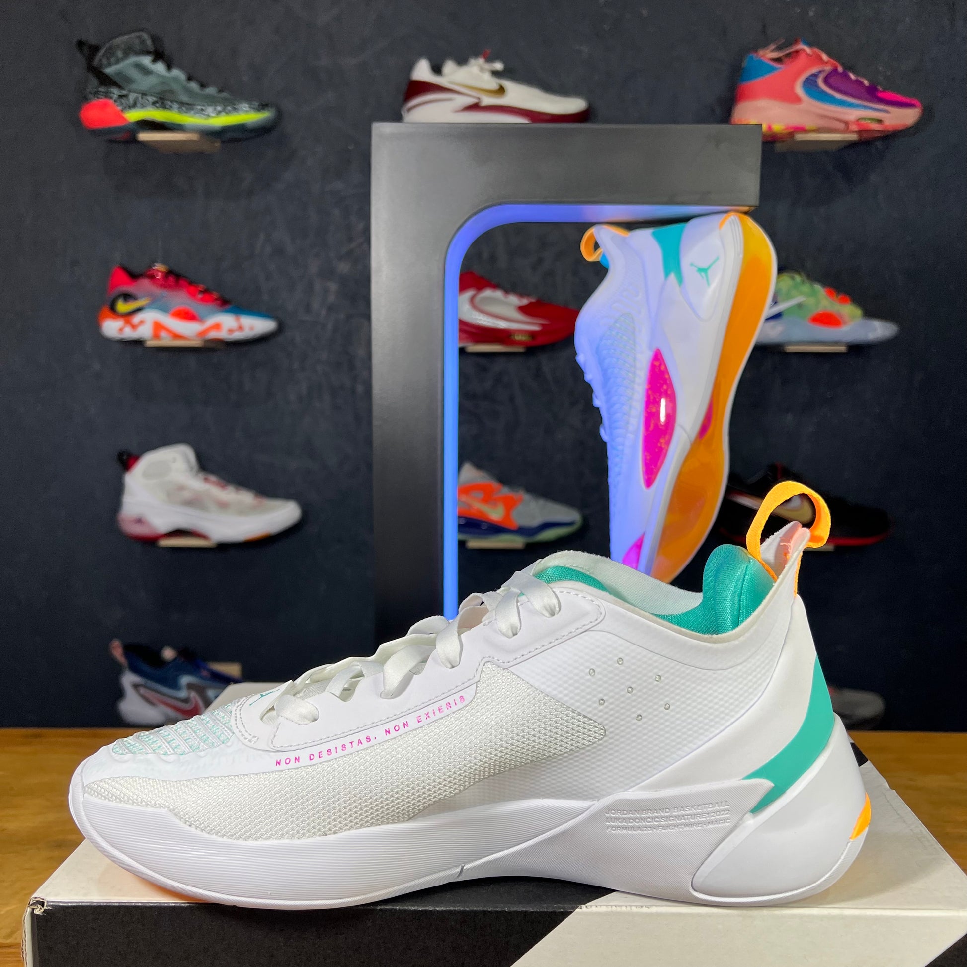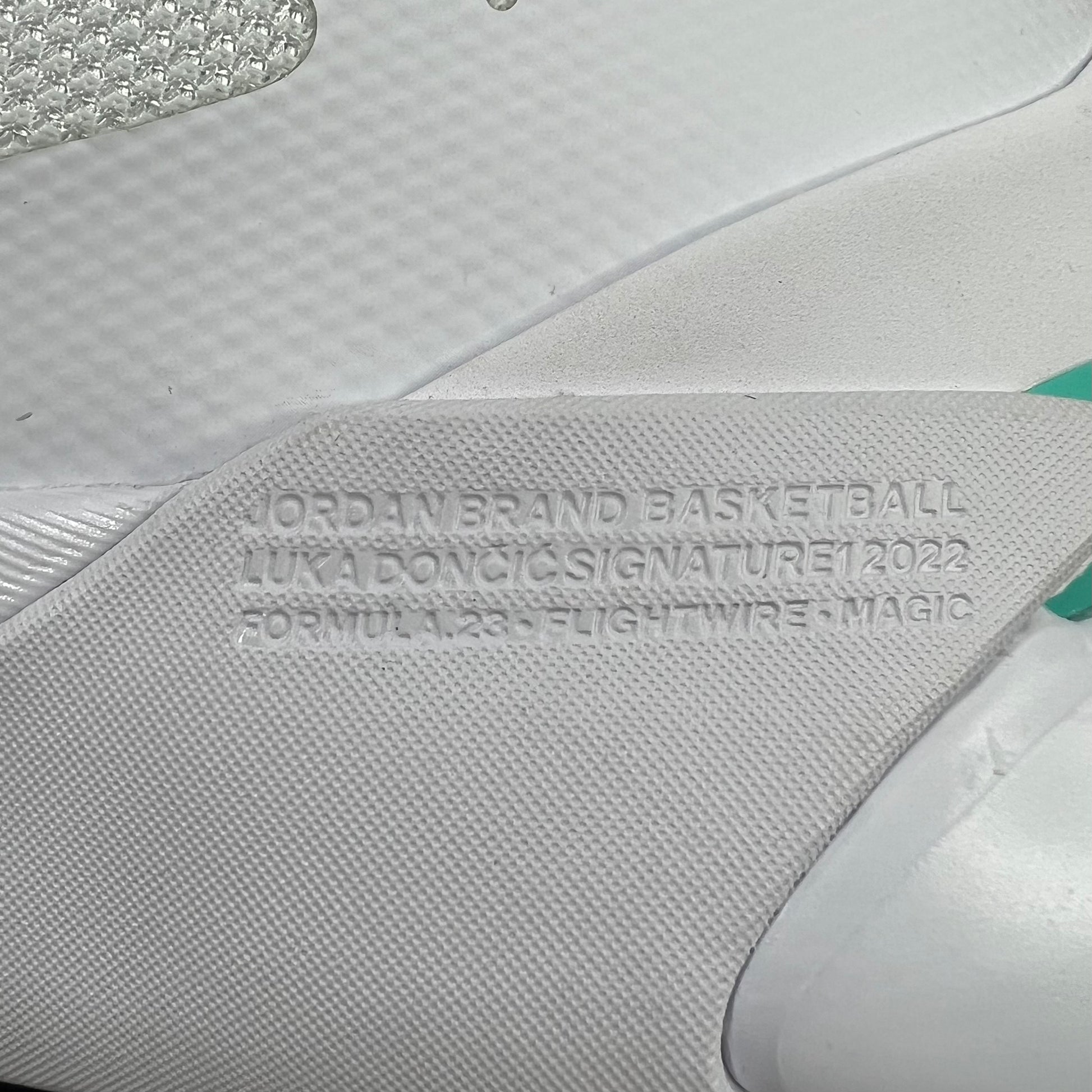Contiene una suela de goma traslúcida con un compuesto Jordan que se agarran muy bien en múltiples superficies. La media-suela está formada por Phylon y la espuma Formula 23 en toda la longitud de la zapatilla, lo cual genera una buena sensación reactiva en la cancha. El Upper o parte superior de la zapatilla es mayoritariamente Mesh de alta tecnología envueltos con cables Flightwire bordados. Finalmente, el upper tiene una envoltura de goma que se diseñó para optimizar la tracción en el step-back característico de Luka.